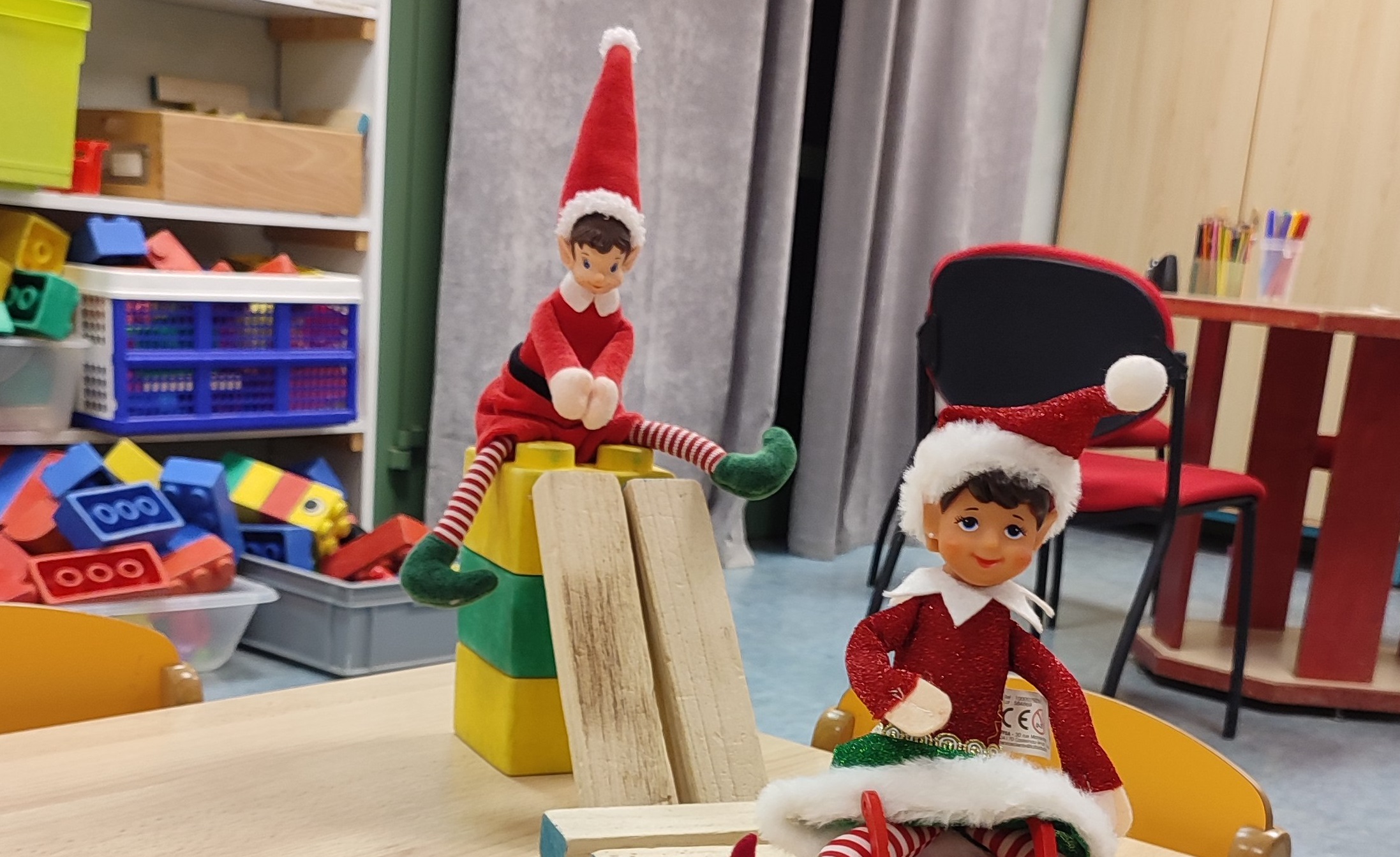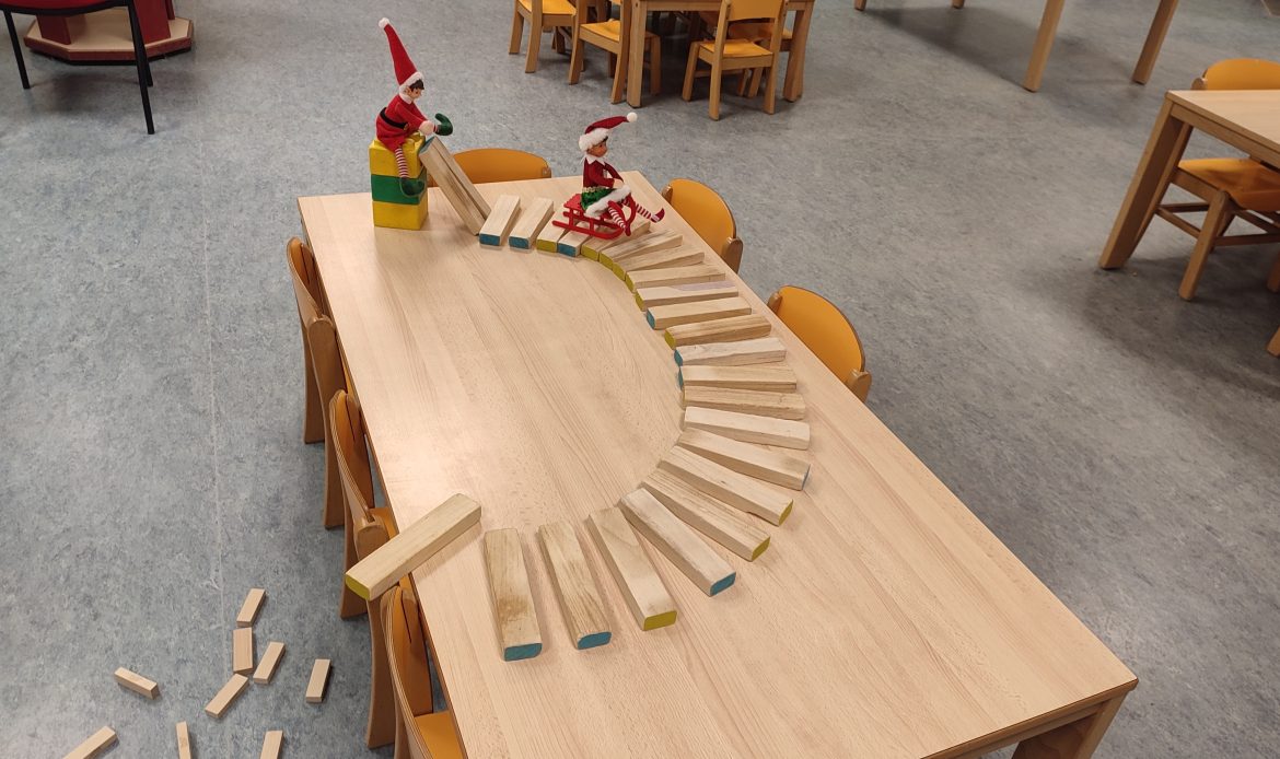 Mais les lutins sont de petits farceurs et les enfants ont eu la surprise de découvrir dès lundi 1er décembre que Flocon et Neige s’étaient bien amusé en leur absence, en construisant une vertigineuse piste de luge avec les briques de construction en bois  !