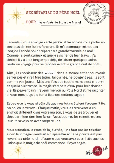 Celui-ci leur annonçait l’arrivée imminente de Neige et Flocon, deux lutins de Laponie venus se reposer auprès des enfants avant Noël.