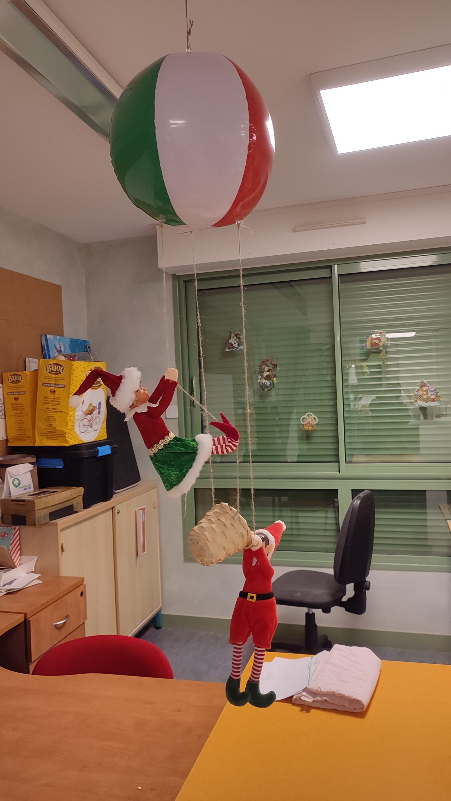 Les lutins ont encore frappé ! Ils se sont confectionné une montgolfière pour effectuer un vol au-dessus des locaux de la garderie