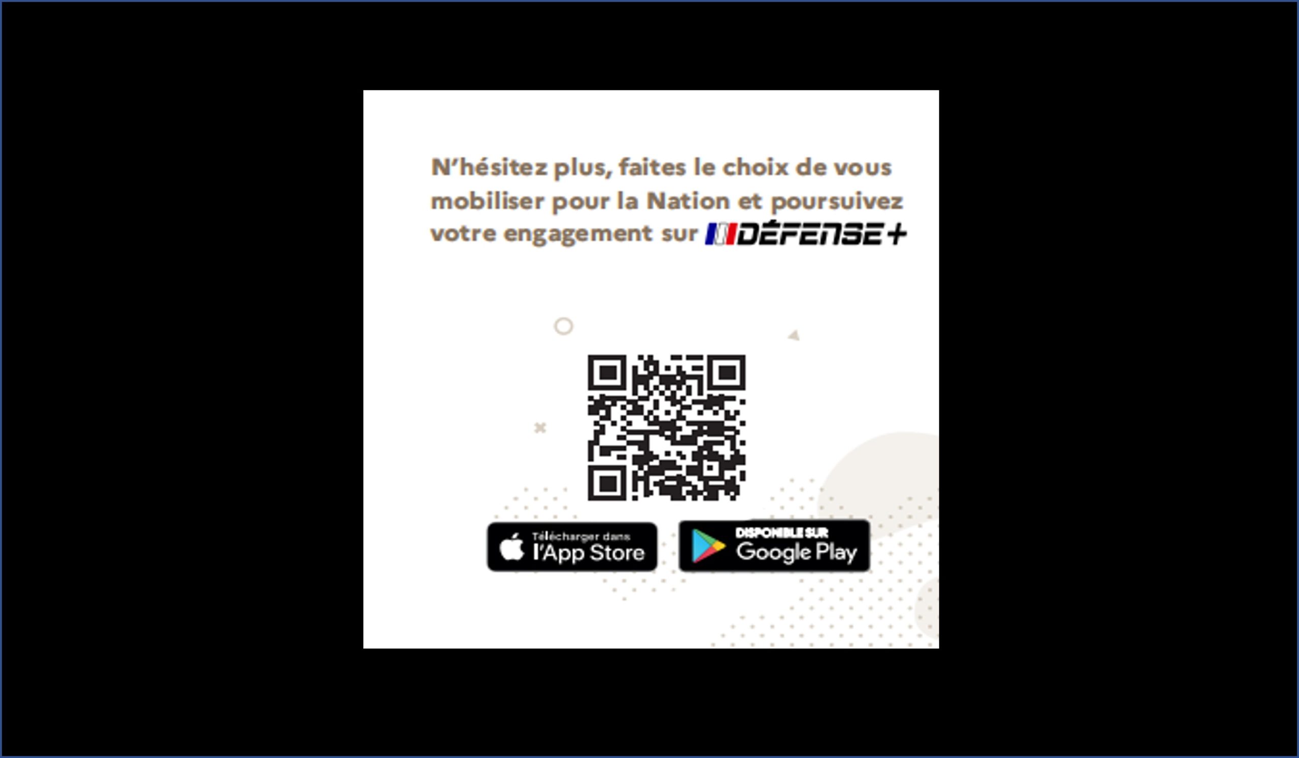 Une fois le recensement effectué, vous pouvez télécharger l’application Défense + qui vous indiquera toutes les étapes de votre parcours, du recensement jusqu’à vos 25 ans. Cette application comporte aussi des témoignages et des vidéos. Elle peut être téléchargée à partir du QR code ci-dessous :