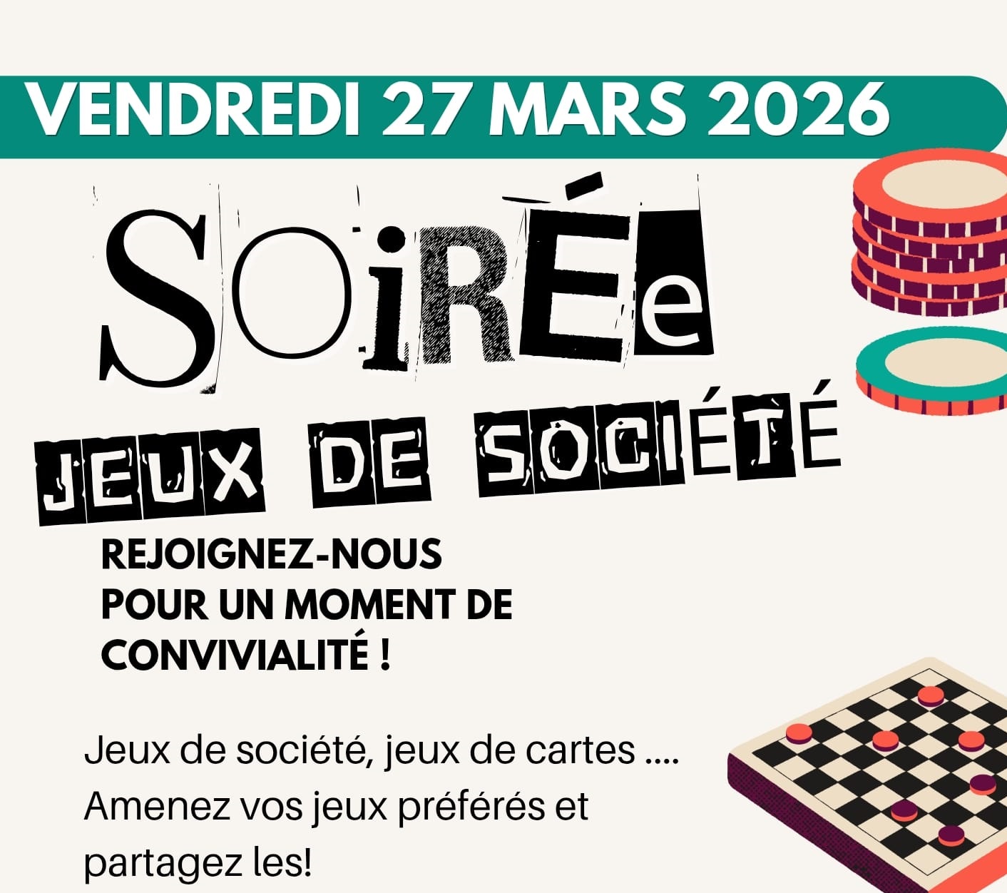 L’association Just A Côté organise ce vendredi 27 mars 2026 une soirée jeux de société à la Maison des Martellois. Comme lors des éditions précédentes, vous pouvez apporter votre jeu favori pour le faire découvrir aux autres participants. Entrée gratuite 19h30-22h30
