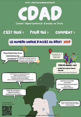 Le Conseil Départemental d’Accès au Droit de la Haute-Vienne a engagé, pour l’année 2026, une nouvelle dynamique visant à renforcer ses actions et sa visibilité sur l’ensemble du territoire. Dans ce cadre, la reprise des permanences juridiques assurées par une juriste constitue une priorité à très court terme.
